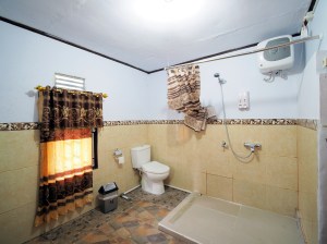 About 20 m2 on the ground floor and second floor, air conditioned room with private hot & cold shower.